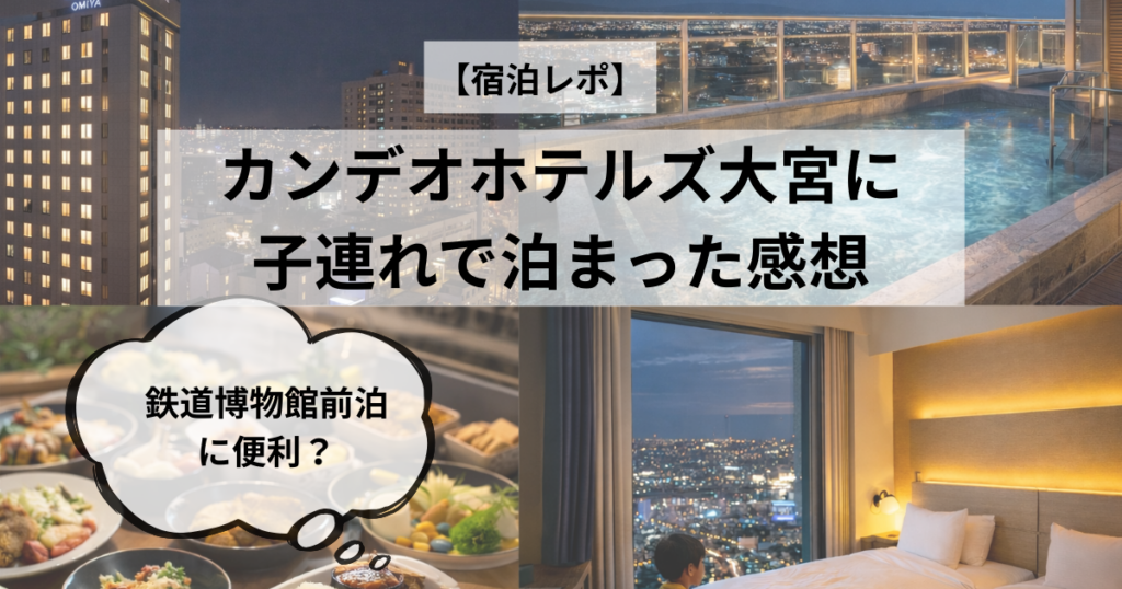 鉄道博物館(大宮)前泊に便利なカンデオホテルズ大宮に子連れで宿泊。駅近でアクセス良好、スカイスパや客室の感想、朝食の様子までリアルにレポートします。鉄博に行く前日のホテル選びの参考に。